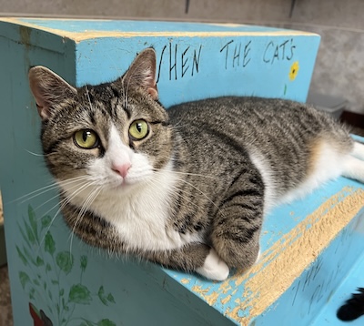 Quiet, sweet kitty who's open to a belly rub on the first date!