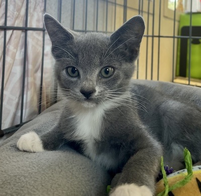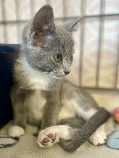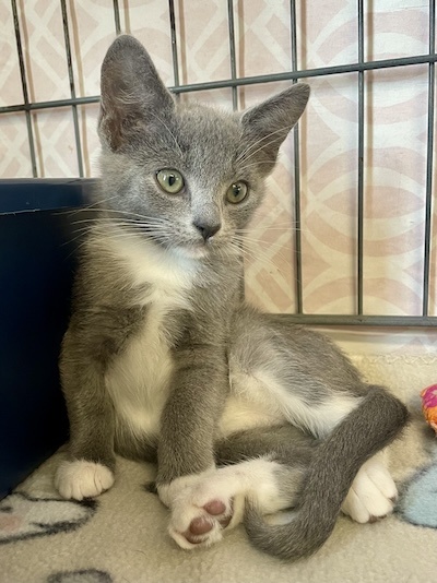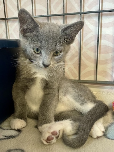 Arwen is a very friendly kitten, she is not only adorable with her gray and white fur and charming long white socks, but she also has a delightful personality that will warm your heart. She is incredibly playful and full of energy. She enjoys exploring her surroundings, chasing after toys, and engaging in playful antics. Whether it’s a wand toy or a ball, Arwen is always ready for some fun. With her agile movements and curious nature, she can turn any ordinary day into an exciting adventure. Her mischievous antics often lead to amusing moments that are sure to bring a smile to your face. Beyond her playful side, Arwen is also quite the cuddle enthusiast. After a long play session, she loves nothing more than curling up in a cozy spot with her siblings, purring contentedly as she drifts off to sleep. Her gentle purrs and endearing snuggles make her a comforting presence.