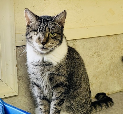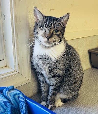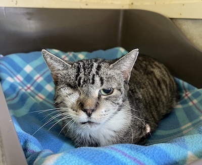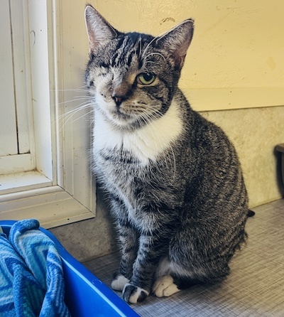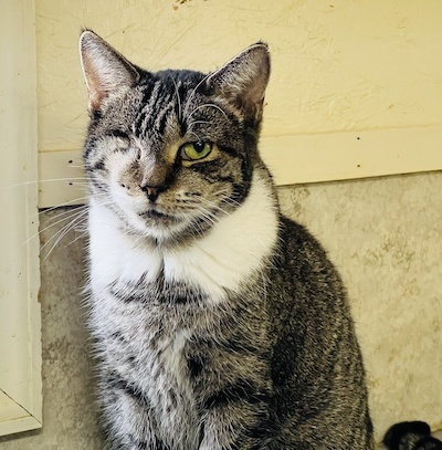 HISTORY: Aspen was trapped from a local cat colony. She was found with extensive injuries to her face and eye. Sadly, we could not save her eye but she gets around with the one eye without any issues.