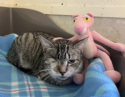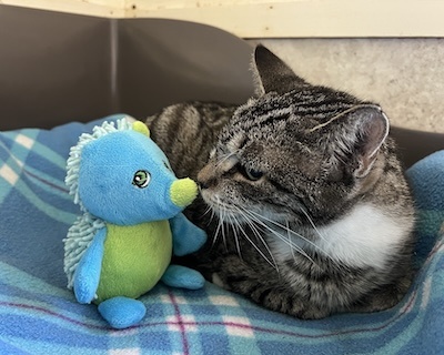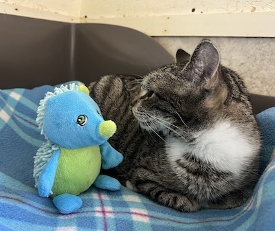 We dare you to NOT be drawn to our pretty tabby lady ASPEN. This delightful, kind and most sweet natured girl has not had an easy life and is taking it one day at a time to be her best pet self. We are immeasurably proud of Aspen as slowly but surely, she’s sharing with us all of her pet greatness.