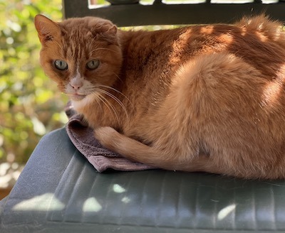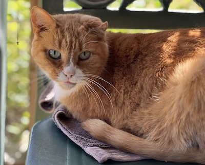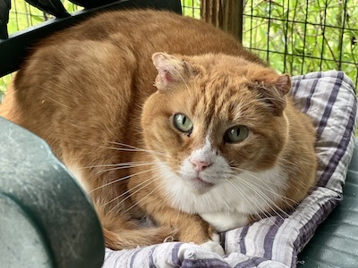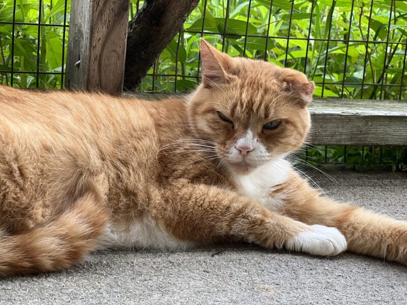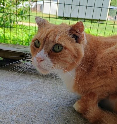 Update Fall 2024: My good volunteer friend Scott says I am in better spirits and slowly but surely climbing out of the physical and mental hole I spiraled down into when I had my ear mite issue. While that was some time ago, still the effects are most lingering and I’m working hard to restore my best pet self! To that end, Scott has noticed me more and more outside on the catio enjoying the warm temps on my shoulders and maybe my belly area. I’m a little more mobile and might even utter a few “mews” of hello when I see Scott coming my way. While I am more apt to lone and be by myself, still I might periodically seek companionship from kitties Belinda and or Patsy. In the big picture, I’m doing better and folks are happy to see the good ol’ Fred being restored to his great splendor. FRED