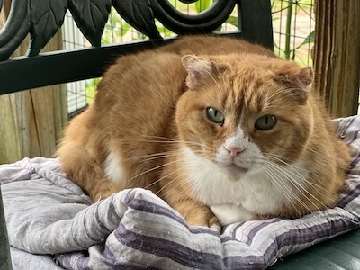 Spring Update 2025: At this point “I yam what I yam.” Folks are thinking that my personality is perhaps set following my ear hematoma struggle so the more shy, reserved, quiet guy that you’ll find hanging out on the top of a condo is truly the new me. As they might say, “Don’t cry for me,” as I’m content with the new me and I am never lacking for friends. It’s a rare day for example that I am not flanked and or nestled into a group of other 4 legged friends. My good human friend Scott is wonderful and consistent in giving me short petting sessions as he stops by but also respects that our sessions may be more short in duration. Thankfully I have no emerging health issues, so I can chill and relax with my friends. Life is good. Fred.