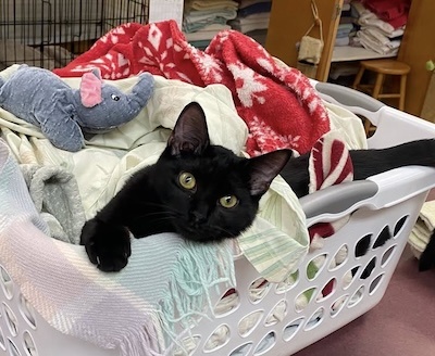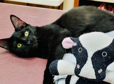 Take a moment to meet Groucho, whose sleek black fur is incredibly soft to the touch. Don’t be misled by his name; he’s truly a lovebug! He, along with his siblings—Chicko, Margaret, and Thelma— was brought to CFC at around five weeks old, discovered by one of our volunteers during a visit to the colony. The little ones were found wandering in a yard, with no mother in sight.