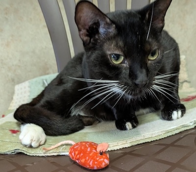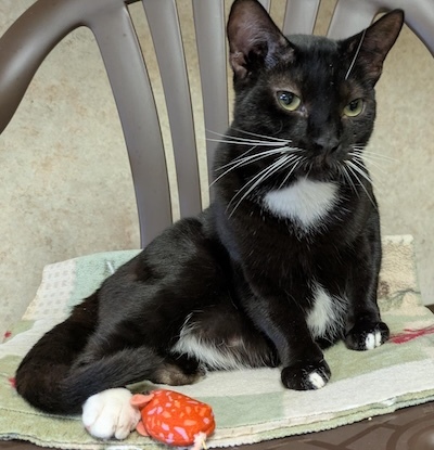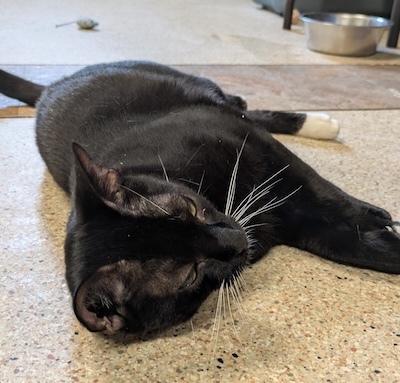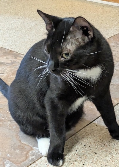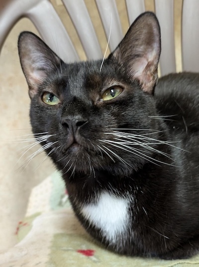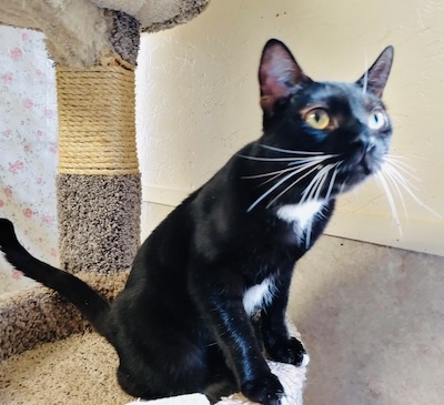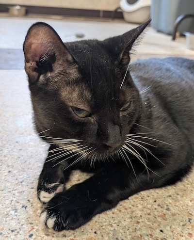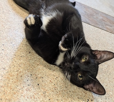 April 2026 Volunteer Thought: Harpo has really blossomed from the shy guy he started off as. He follows me around the room until he gets the exact amount of pets off of me that he desires. Missing half a paw doesn’t slow him down much, he jumps and plays like any other cat. He’s my sweet boy.