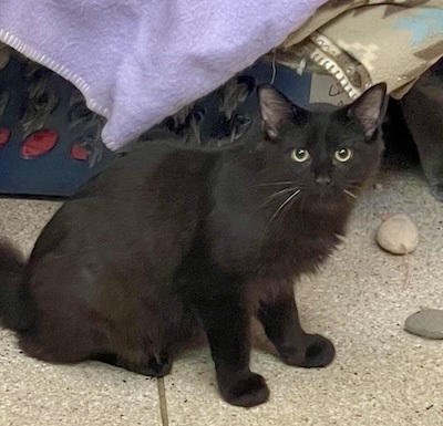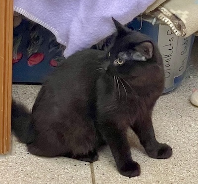 Jaffa is an adorable, fluffy black kitten. He arrived at CFC with his equally charming siblings, Jabar and Jace. While his brothers are a bit more outgoing, Jaffa is a shy little soul who is slowly beginning to come out of his shell and make progress in his socialization with people.