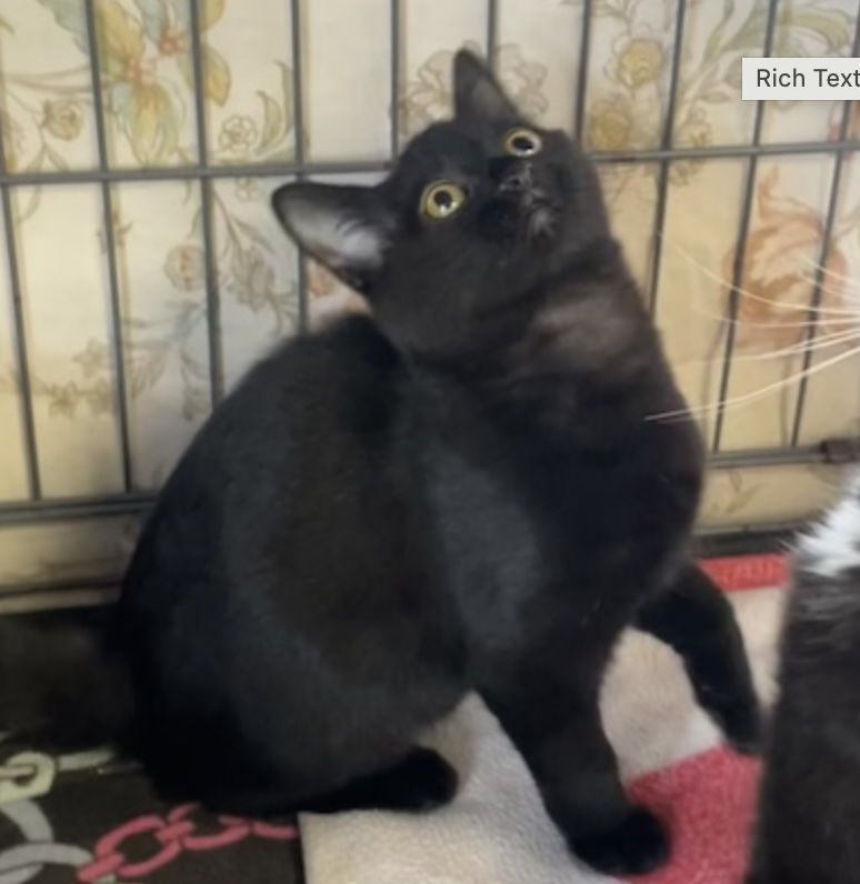Allow us to introduce you to Maple, a sweet, short-haired black kitten. Maple’s journey began in a colony where she received little attention or affection, leaving her quite frightened when she first arrived at the sanctuary. However, in the few months she has been with us, her transformation has been heartwarming to witness.