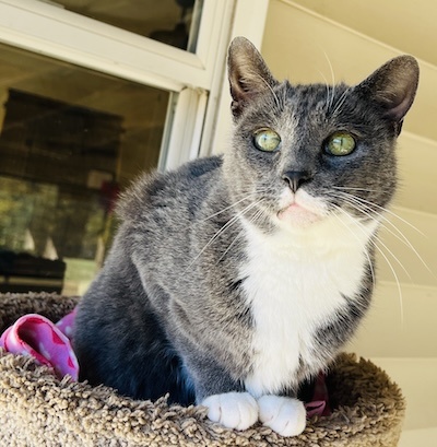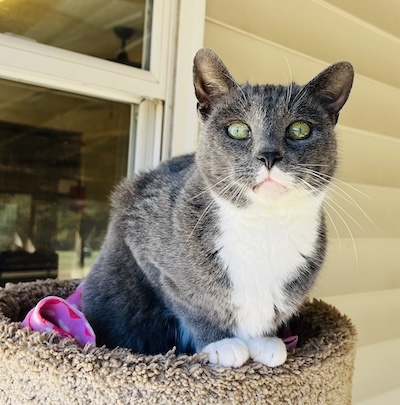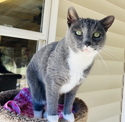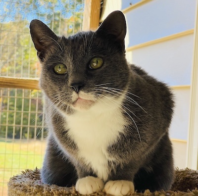 This handsome kitty came with the moniker of Gray-Gray. I know! But after meeting this sweetheart and receiving multiple nose boops, we had to change his name. He needed a strong name to highlight his masculine persona. Mason it is; a strong name (stone worker-with a gentle soul). It fits him purrfectly. He took his time to observe his new roommates from the comfort of the open door of his condo before exploring his new digs. He has made friends quickly and is now one of the first to greet you. We are working on making him a lap kitty but we will take the nose boops and belly rubs till then. This Mason will be building many new friendships.