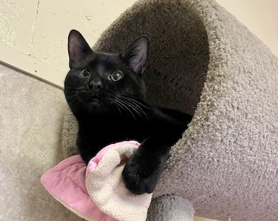 Neo is a spirited black teen kitten who is the epitome of liveliness and friendliness. His boundless energy makes him the life of any play session, where he revels in chasing toys and pouncing with delight. Neo’s charming personality and affectionate nature make him a favorite among both people and other animals.
