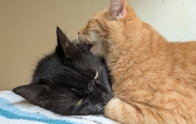 Our pretty lady TANGO might wish for you to know that she was one of the original orange kitties to move into her current room. Seems more recently, lots of other orange/ginger kitties have invaded her space …of course most male cats…but as pleasant, sweet natured and welcoming a kitty that she is, well, it’s just water under the bridge for her. She’s the original orange though! Tango is a true friend to all. She can be found sunning outside on her catio, relaxing in a fleece covered chair or maybe inside on top of a condo. More recently we’ve seen her hanging out with Bandit…a big, fluffy black cat who really doesn’t like us humans… but hey, we all need and deserve friends, right? Calm and polite, Tango is out of her playful, kitty stage and seems content to chill and enjoy the company of others around her. She is open to human pets and attention and if slowly approached, you too can experience her generous personality up close and personal. Wish to give it a go? Let’s hear from you.
