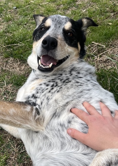 Pebbles is a soon to be 7 year old Blue Heeler mix who has been a one family dog since he was initially rescued and adopted out when he was 12 weeks old. Pebbles is very smart and simultaneously very goofy! He loves “scratchies”, ample affection, and loves to play with squeaky toys or soccer! He still gets the “zoomies” outside when it’s time to go on a walk, hike, or other adventure, but is equally content lazing around the house as a furry couch potato. He is a loyal and loving companion.