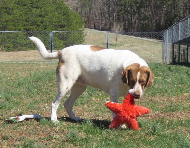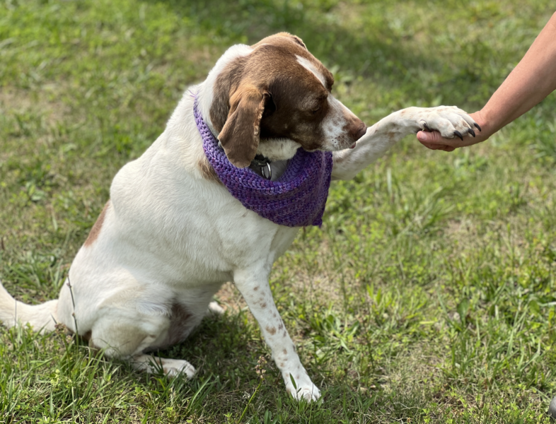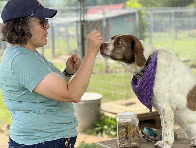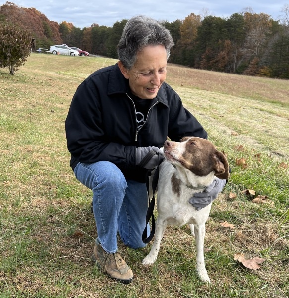 This lovely lady will be at her best in a home with structure and steady routine headed up by confident, loving humans with prior dog experience. She needs lots of human attention and cannot be an afterthought, bustled all around, crated or ignored. The setting would not work and Olive will regress, be unhappy and this may set up a situation for failure. She needs someone who will not let her run the house, and who will foster an environment where she will feel safe. She is very complicated, extremely smart, but delicate, and needs a consistent, predictable, steady but soft approach to her, particularly in settings she is unsure of or not accustomed. She may enjoy the company of another pointer or hound, but is best with no children or cats. Her journey to her forever home should be done carefully, and she should be given time to adjust before meeting other dogs in the household, or the neighborhood friends that will surely want to see her. She previously had a habit of resource guarding and would not let you touch anything belonging to her, but extensive training has curbed that tendency, and we have not seen that behavior here at the sanctuary for a long time.