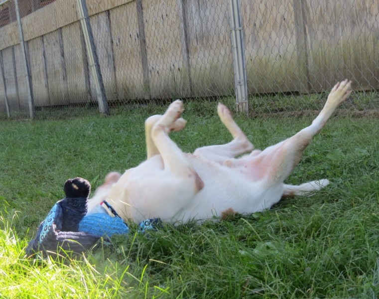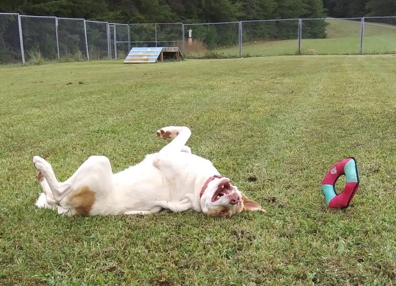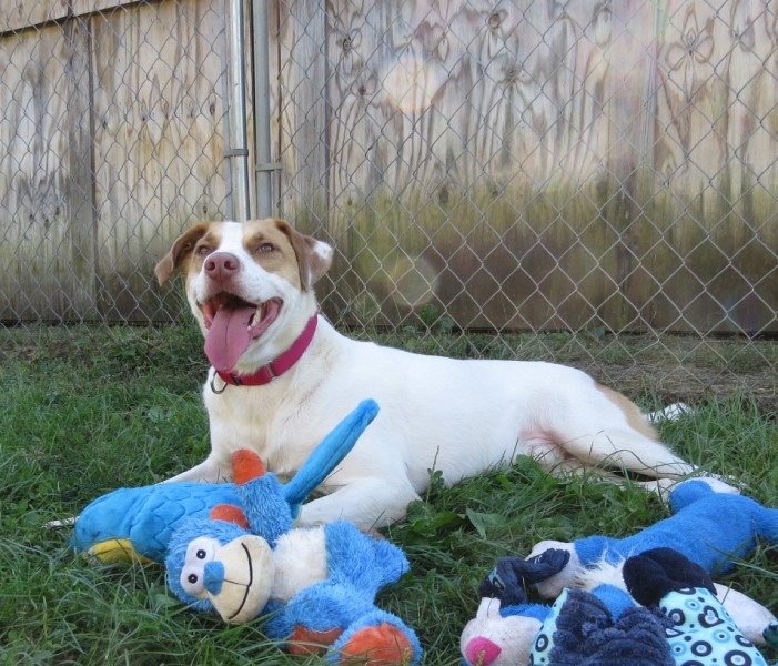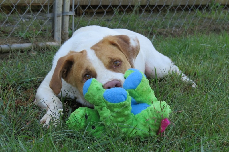 Howdy folks. It’s me Owen. I love to play! I love my toys!!! I also like to chase tennis balls. Folks have commented on how I can seemingly self- entertain for long periods of time if given just a few simple toys. I will carry and throw toys around and then roll on my back in great delight. Still can’t believe the good fortune I have come upon in winding up at CFC! I’ve never met a stranger and I’m told I’m graced with a super sweet disposition typical of many hounds. I’ll admit, I get very excited when I see someone heading toward my pen with a leash. I get so excited it’s hard for me to focus on what I’m told. But I sure am enthusiastic with my affection! If I really like you, I’ll nuzzle my head into you like a hug. I can be a little reactive towards strange dogs and loud noises. I LOVE going for car rides! I hop right in and even flop on my back in delight as I settle in for an adventure. Won’t you take me for a ride…to your house?”