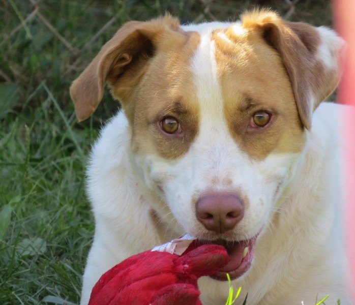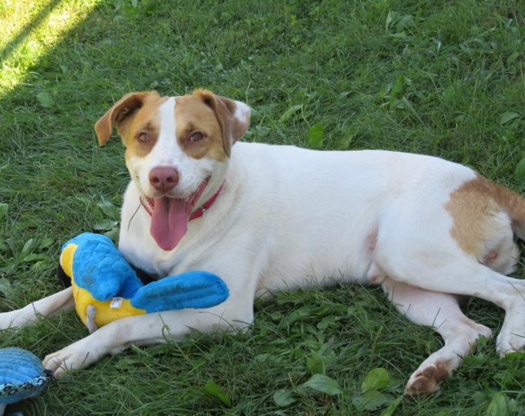 Toys, toys, and more toys…preferably the tough kind, though I love tearing the others apart! I need a loving owner who has plenty of time to play with me, and one who knows the value of structure and a routine. I don’t like new dogs that I don’t get the chance to meet properly, but after I do meet them we might just be friends. Elementary age children and older would be great for me, but cats look like little toys to me, so best not to have those in the household. A lot of new things at once would overwhelm me, so a simple home would be best. A session or two with a trainer would quickly help me bring my energy under control!”