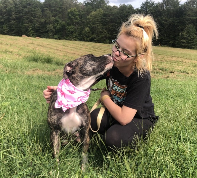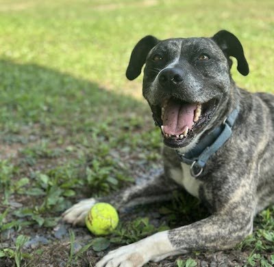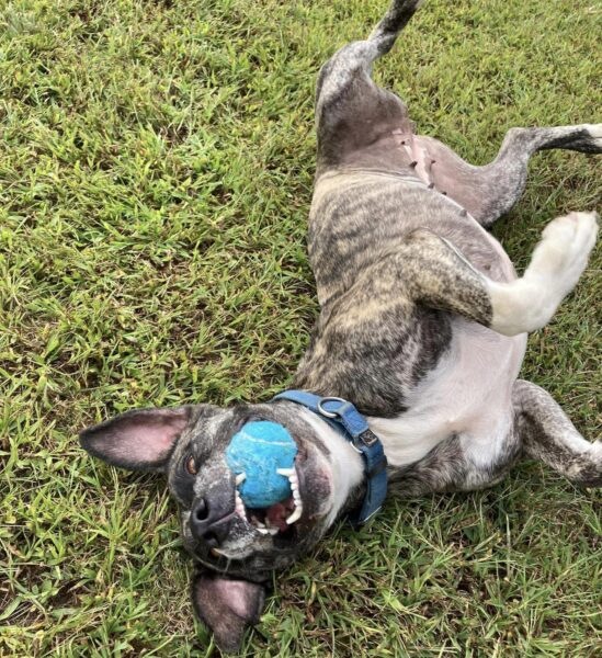 Princess would be happiest where there is someone home most of the time, and possibly would love to have a family with older school age children to love on her. Her first introduction to cats suggested she would not be good with them, and another dog would also be introducing possible trouble. Princess needs ongoing work to understand the concept of loose leash walking, but she is smart and eager to please. With patience and guidance from her human she has star pupil potential! A couple of sessions with a trainer would provide a solid base from which to work! A fenced yard would be a must, as she loves to fetch and especially loves to run. Make Princess’s day – give her a forever home! She will return your investment with interest!