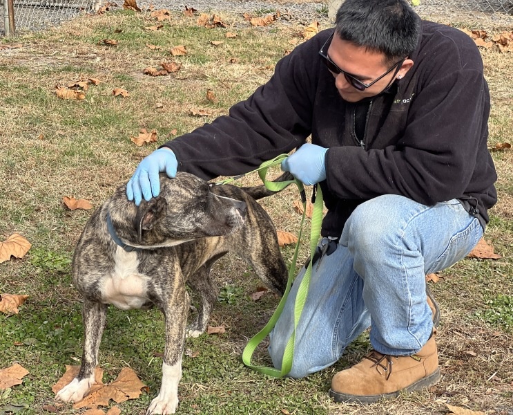 Mom to the Disney Puppies, Princess is well loved by everyone who meets her. She was even chosen as a ‘Staff Pick’. Princess’ age is unknown, but she’s most likely two or three. Many are struck by just how much Princess loves people. Her trademark happy whine can be heard whenever staff members approach her pen. Her go-to move when someone comes to visit is to stand on her hind legs and gently wrap her front paws around the nearest person to give them a hug. Without a litter of puppies to worry about, Princess has seen a surge in energy and playfulness. She loves fetch and will happily chase ball after ball before rolling over for some well-earned belly rubs. The entire staff has fallen in love with this sweet girl and we think you will, too!