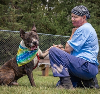 Despite his strong Arnold Schwarzenegger physique, Titan is gentle, loving, and gives the kind of eye contact that melts your heart! He’s making huge progress on leash walks and is ready to keep learning with his forever family.